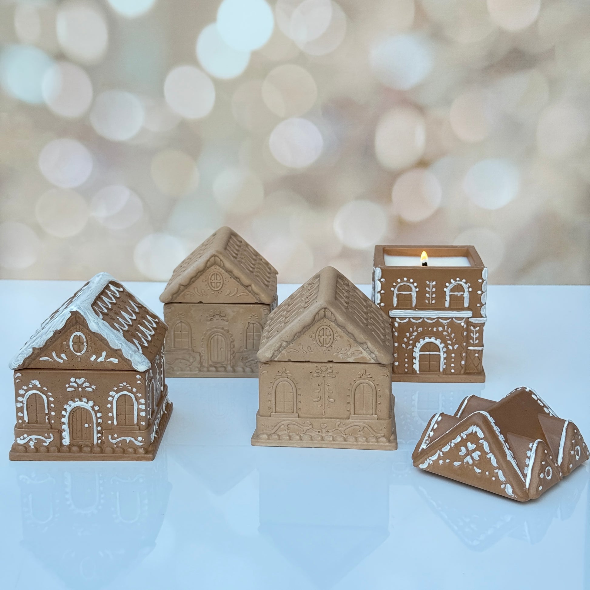 There’s just something about the smell of gingerbread baking that feels like home, isn’t there? Our Gingerbread House Candles are handmade from concrete, poured with creamy soy wax, and finished by hand, each one as unique as the memories they’re made to spark. Choose yours with sweet “icing” details for that classic holiday charm, or keep it simple and modern without.